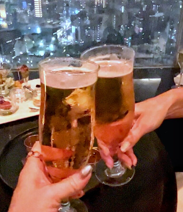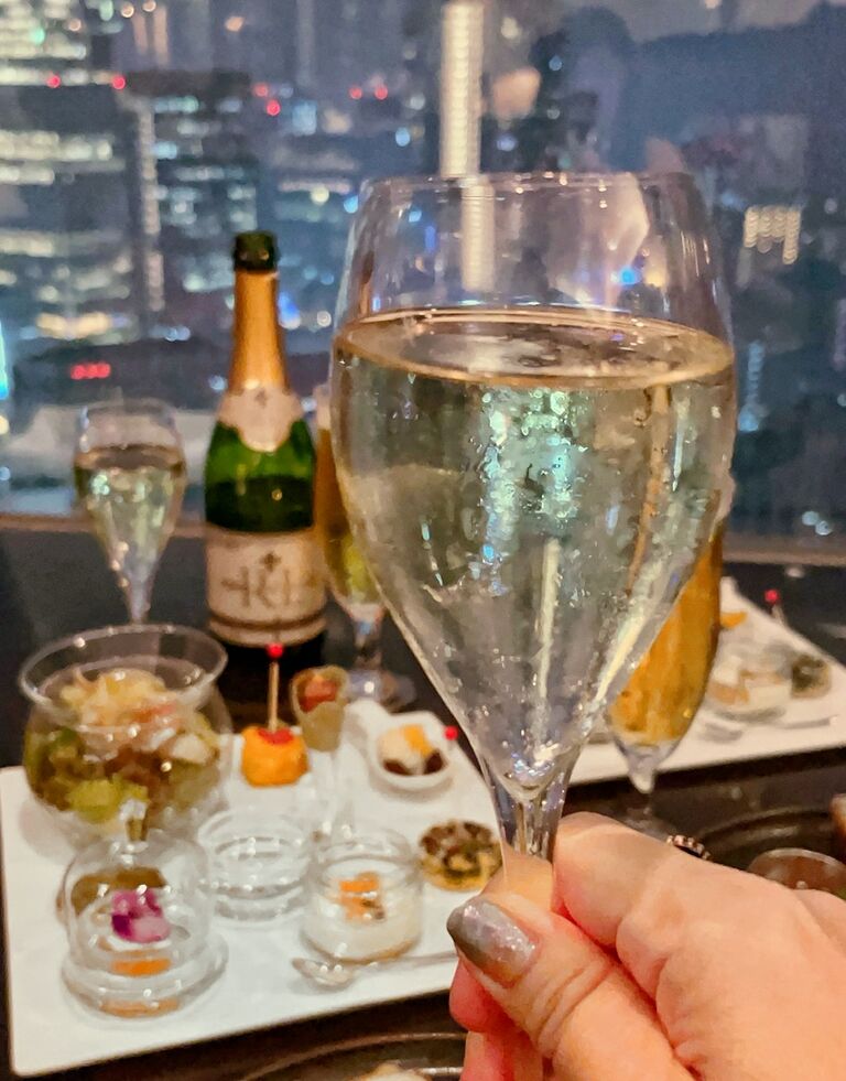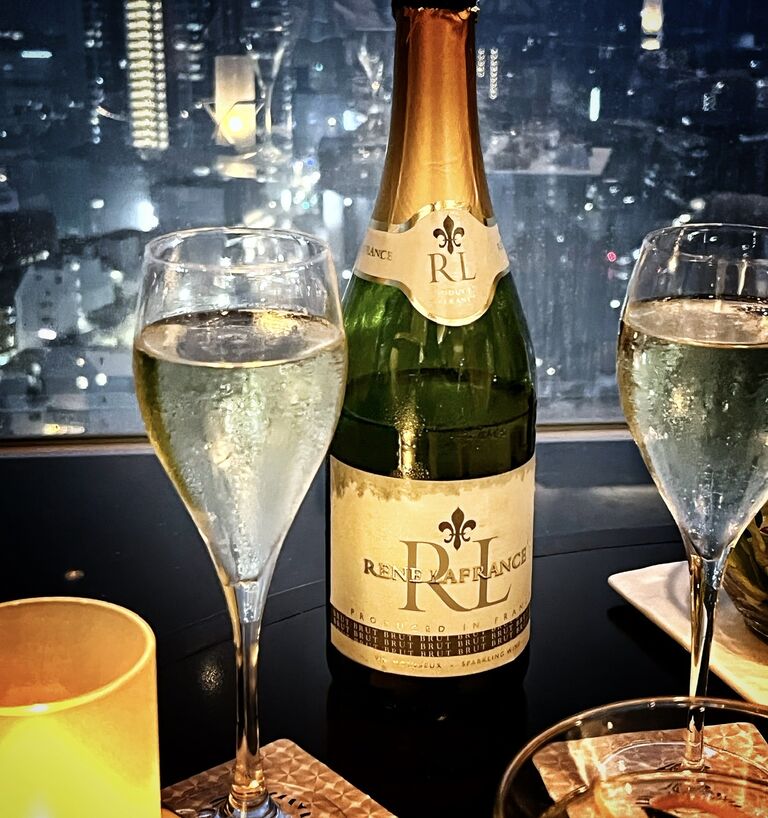 そうこうしているうちに陽が落ちて、まずはスパークリングワインで乾杯♪