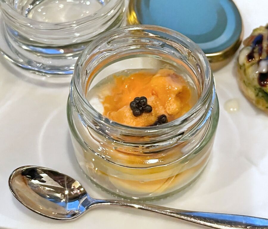 カリフラワーのフォンダン ウニ、キャビ添え