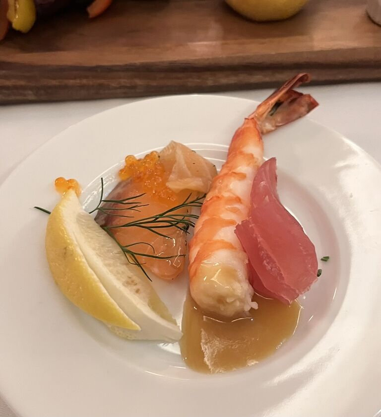 シーフードや生ハムがたっぷりと盛り付けられたアペタイザータワー。