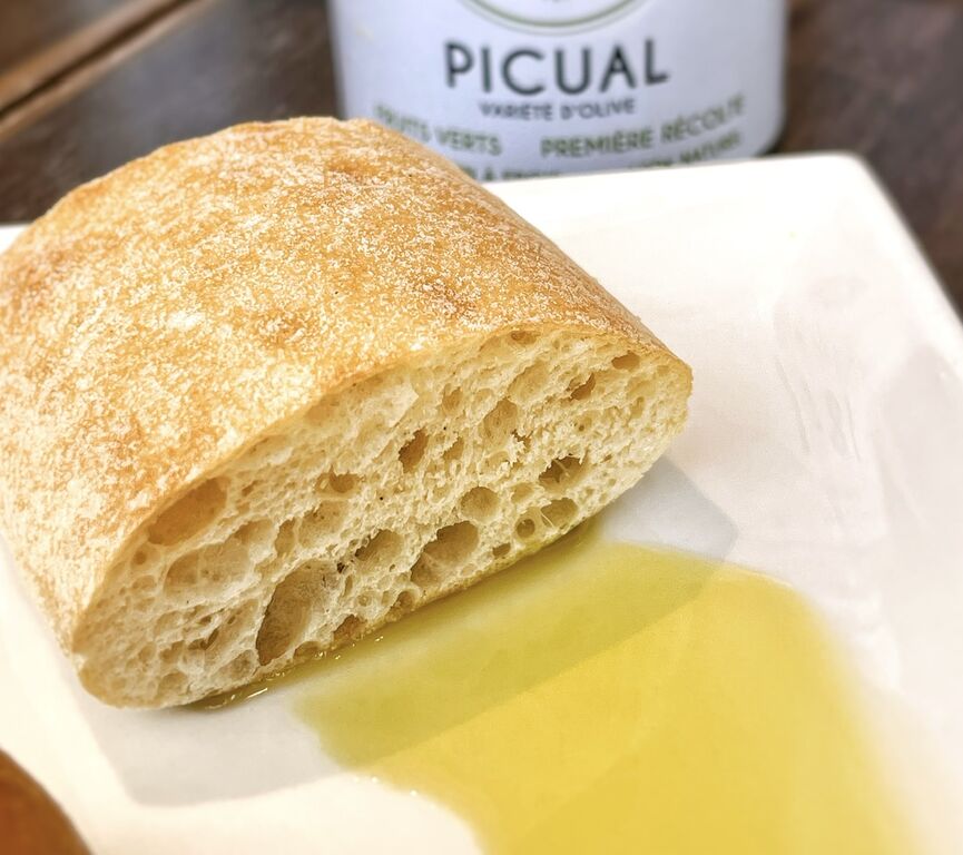 卓上にあるオーガニックのエクストラヴァージンオイルをたーっぷりつけていただきました。