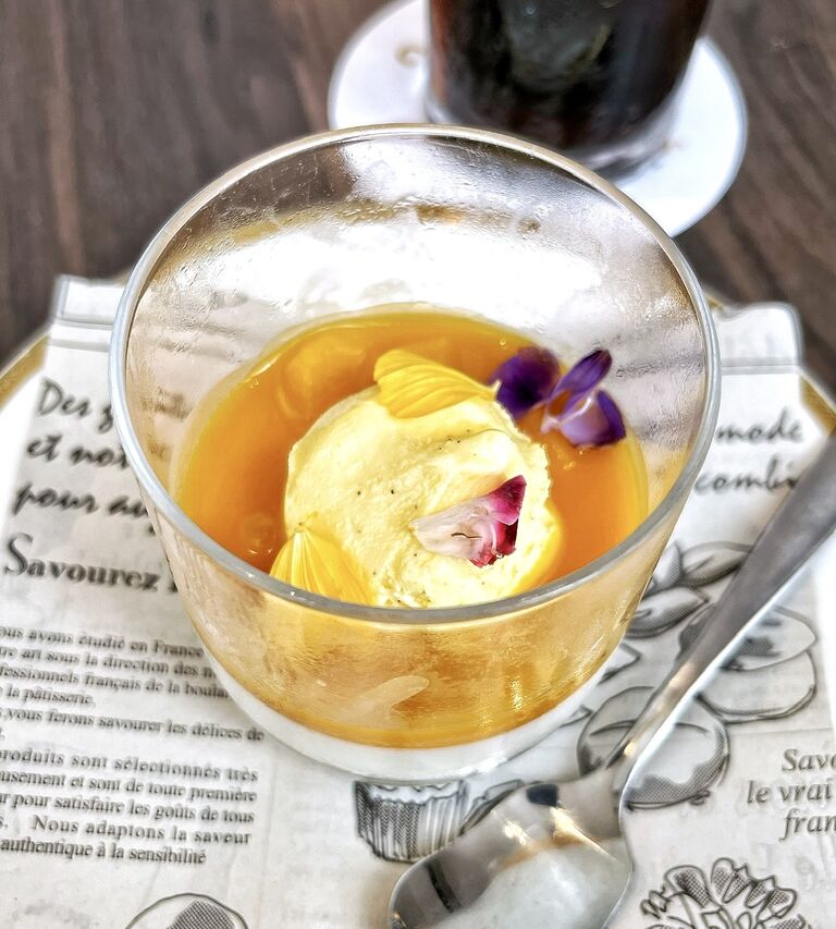 グラスデザートは、「バニラアイスとマンゴーソースのパンナコッタ」。