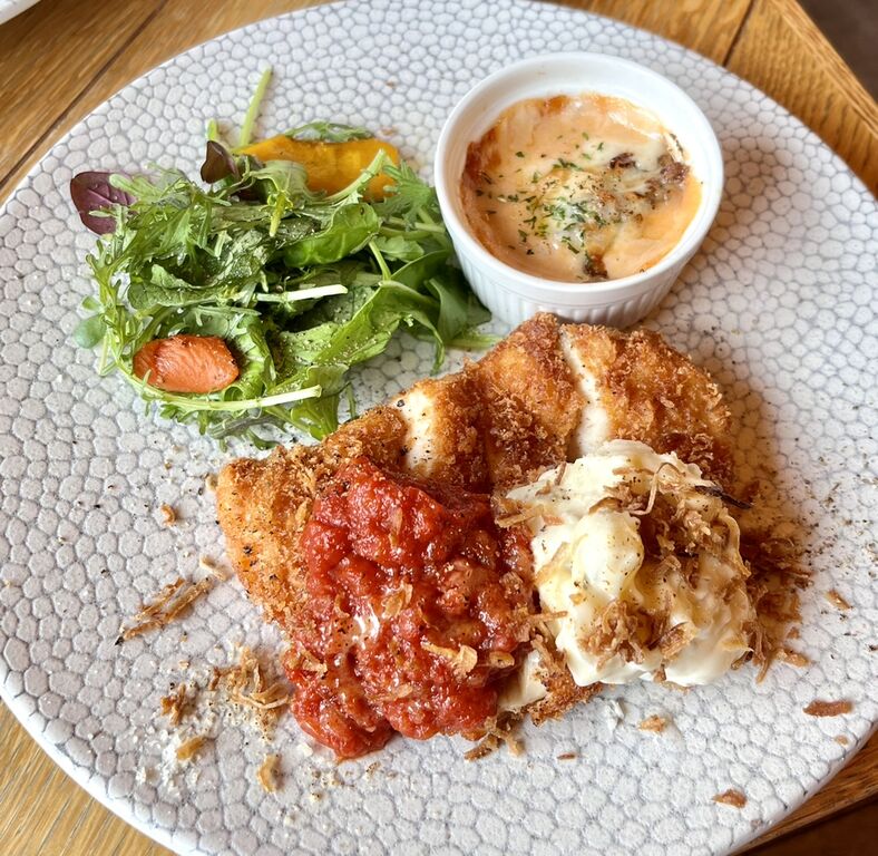 トマトソースとらっきょのタルタルがたっぷり。