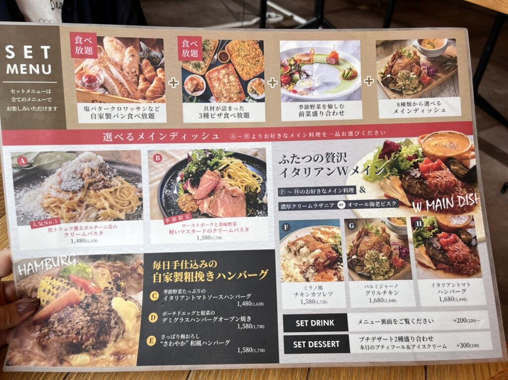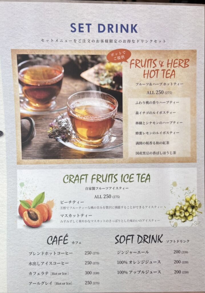 ドリンクやデザートを追加料金でセット可能。
