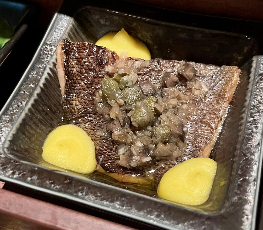 ・イサキのポワレ ジュードプーレとシェリービネガー香るソースで