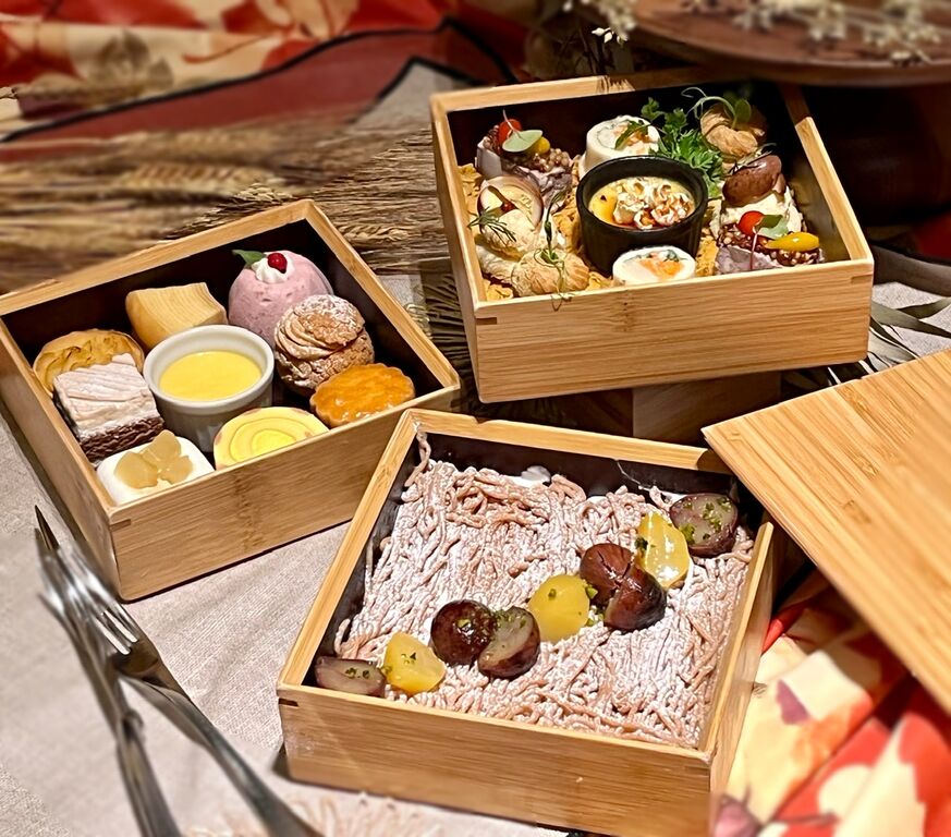 工芸品の重箱に入った大人気のアフタヌーンティーセットに、今年は第3の重として「くりの重」が登場!