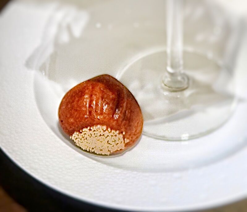 食べ進んでいくと、ラズベリーパルフェやラズベリーゼリー、洋梨ゼリー、グリオットシャーベットなどが次々と現れ、栗のパフェなのにさっぱりと最後までいただけます。
