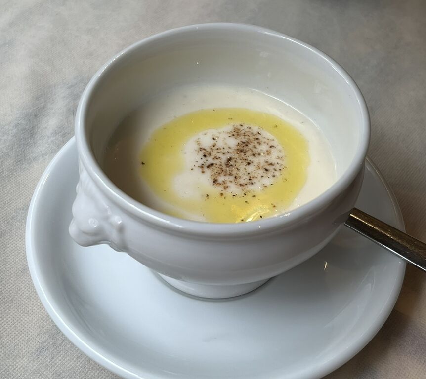 カレー風味のミネストローネか冷製のポタージュスープか選べて、冷製スープに。
