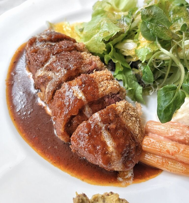 人気メニューの「名物ビフカツ」のセットをいただきました😋😋