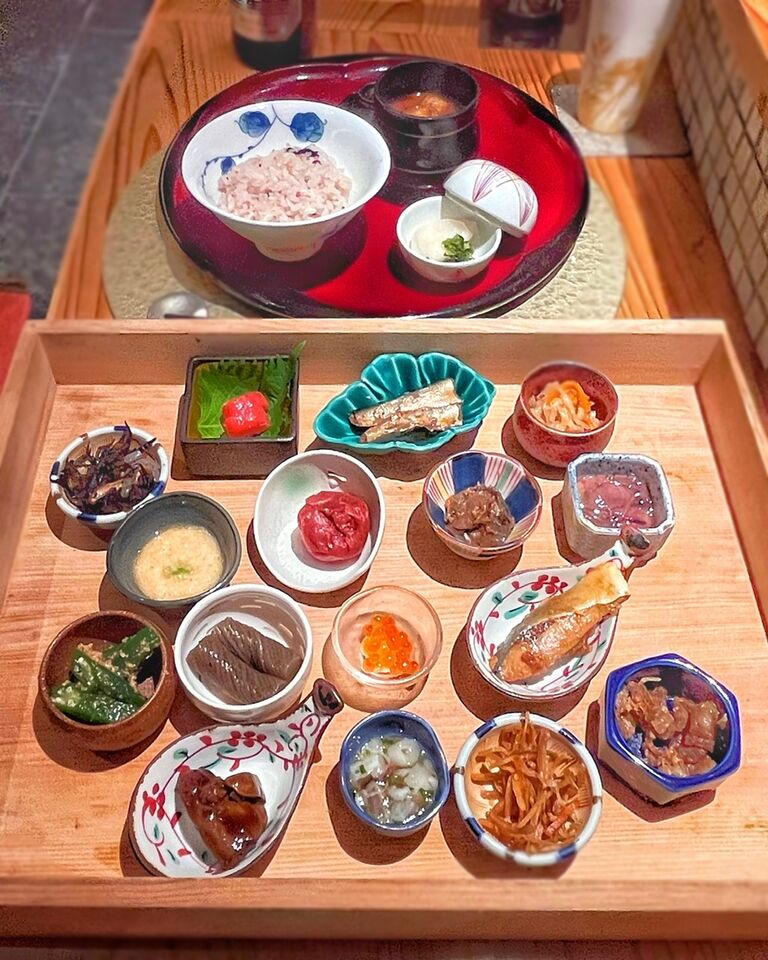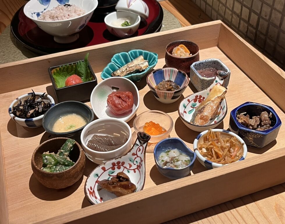 最初にいただいたつるむらさきのお浸しで感じた優しいカツオ出汁。