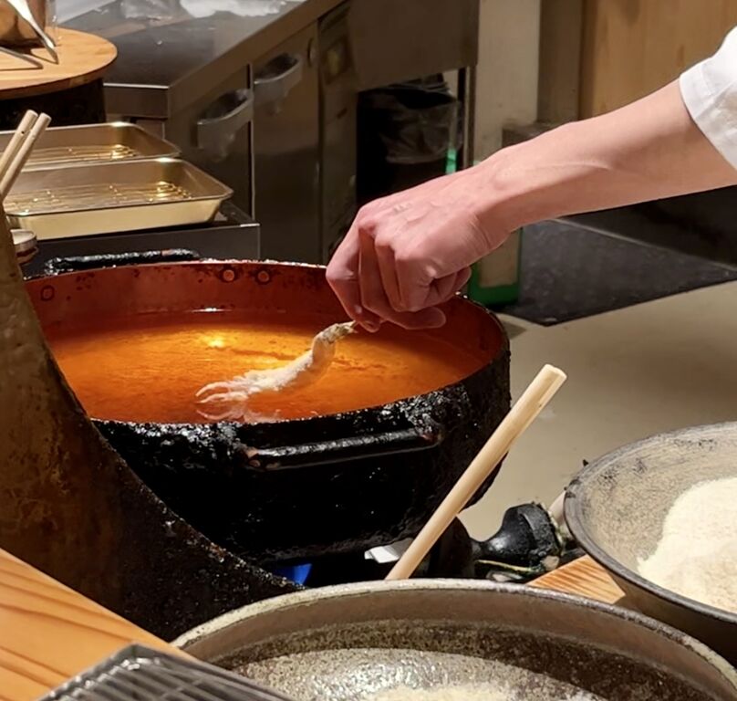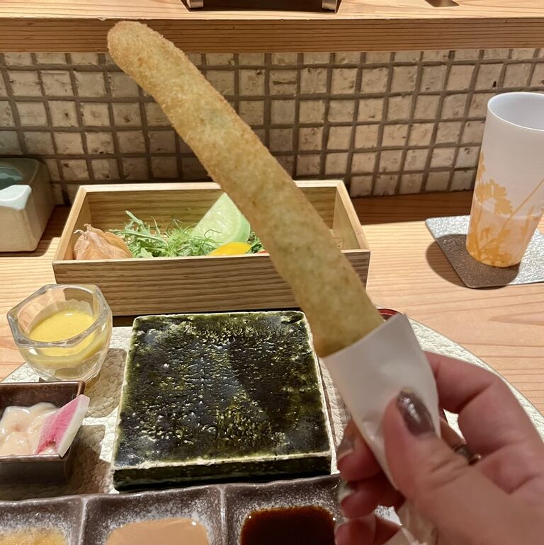 皮が素揚げでさっくり。身はふわふわとろり。