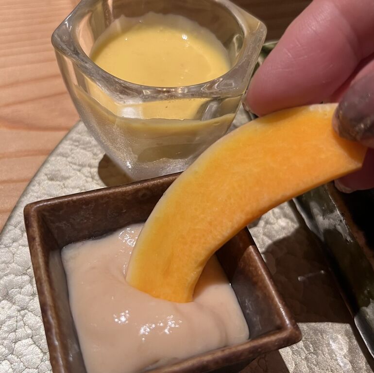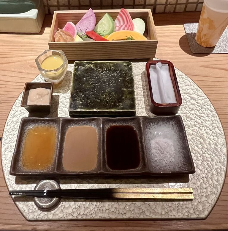 なたね油ドレッシングと味噌バーニャカウダソースを好みでつけていただきました。