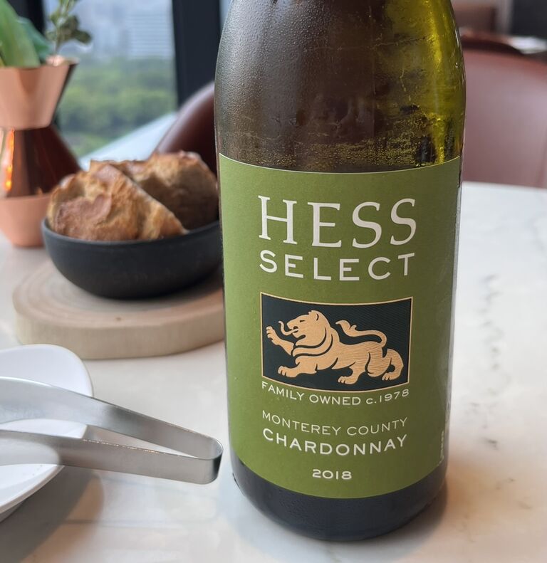 アルコールペアリングの場合はライオンが描かれたエチケットのシャルドネが供されます。