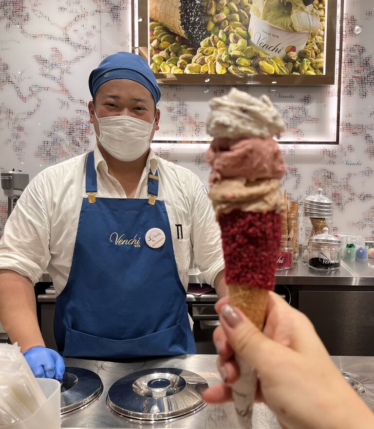 このようにして、対面で会話をしながらジェラートが提供されます。