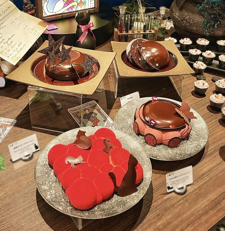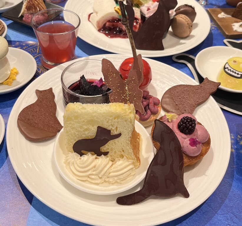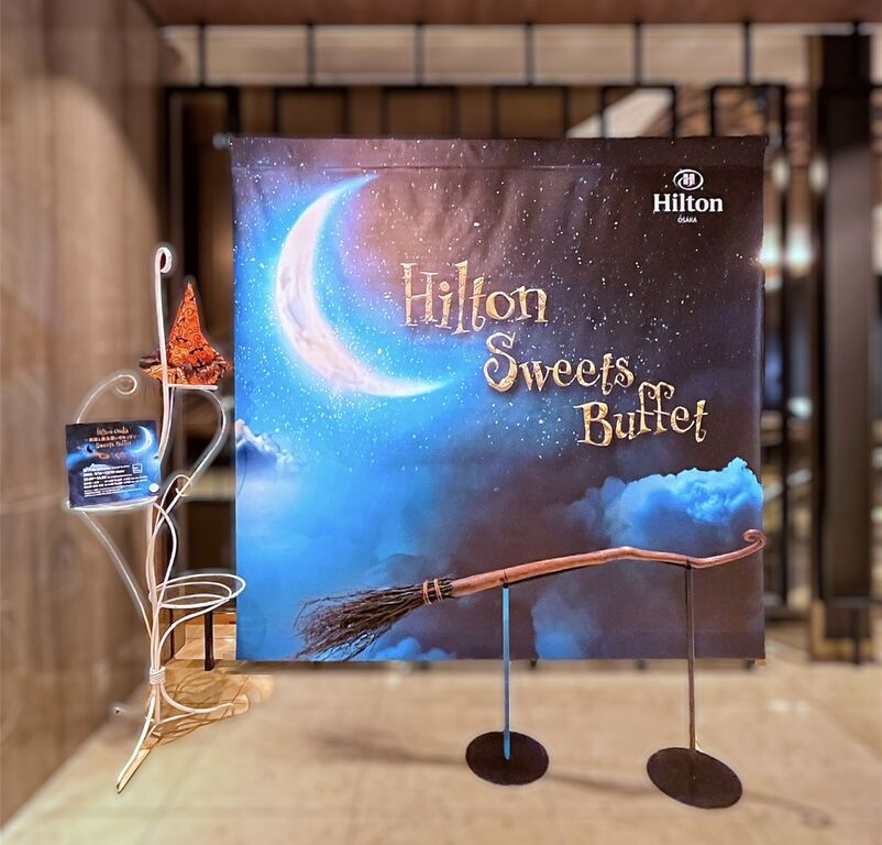 ヒルトン大阪で9月16日(金)から始まったスイーツビュッフェは、サンリオから雰囲気がガラッと変わって、黒猫と魔法使いのミステリアスファンタジー。