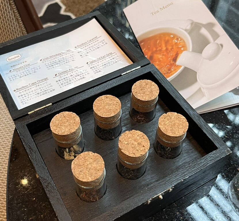 茶葉で香りを確かめてオーダーできるロンネフェルトの季節のおすすめラインナップをはじめ、コーヒーなどのメニューから飲み替え自由。
