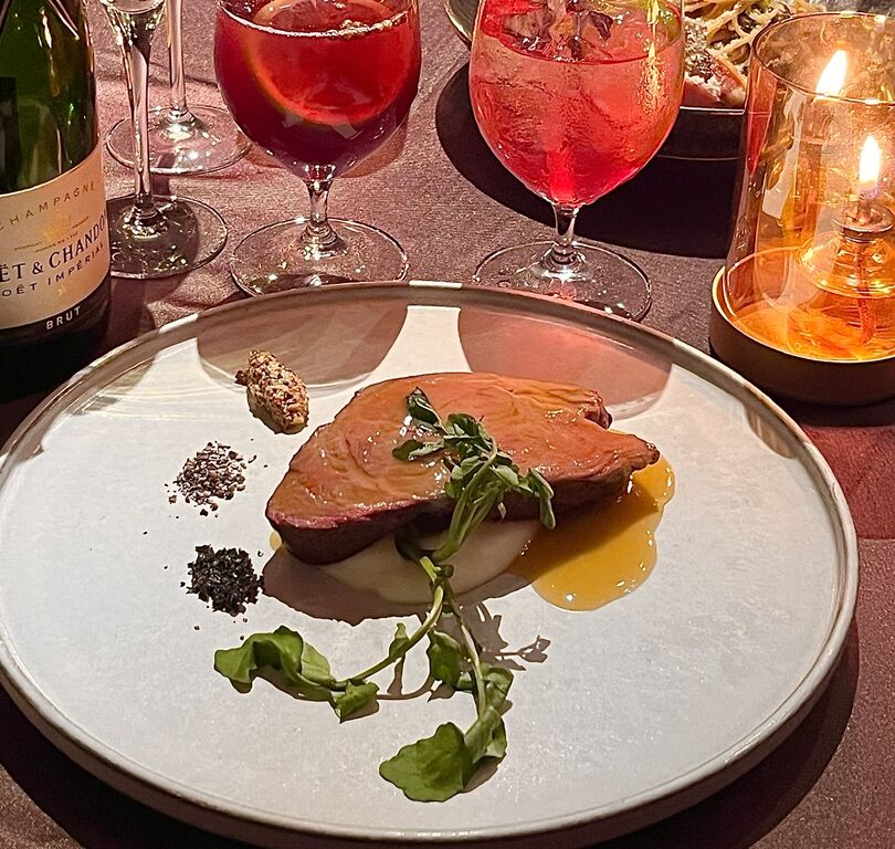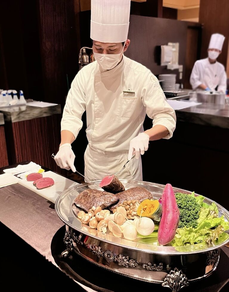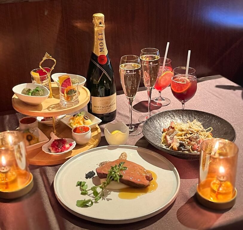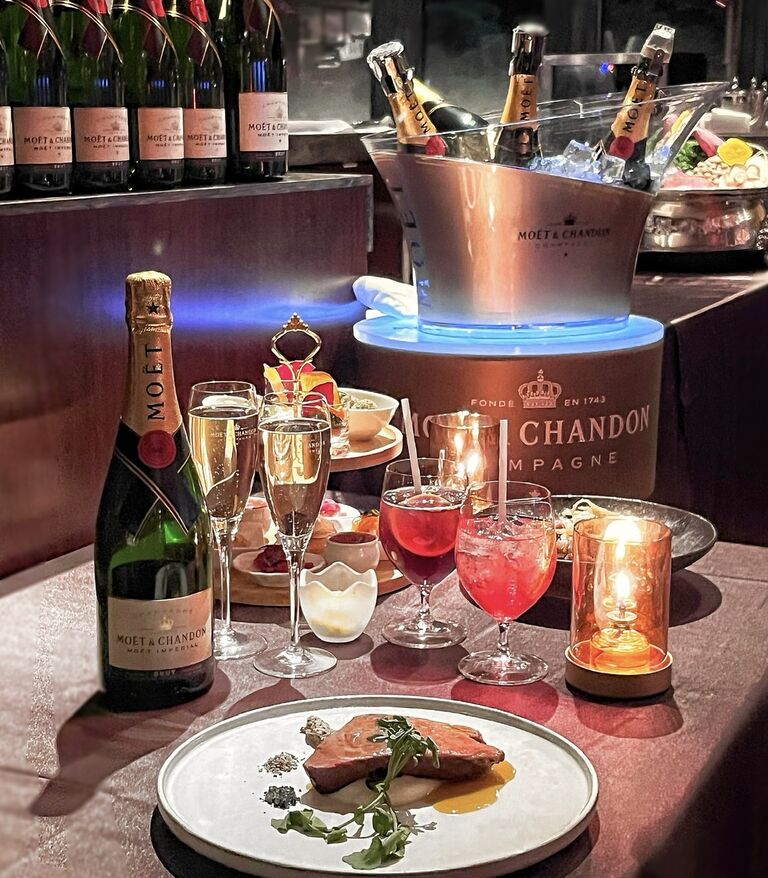 八芳園のシェフが手掛けるサステナブルな一品「経産牛のローストビーフ」をメインとしたコース料理と、モエ・エ・シャンドンを含むドリンク28種がフリーフローで味わえるラグジュアリープラン「白金アペリティフナイト」を開催!