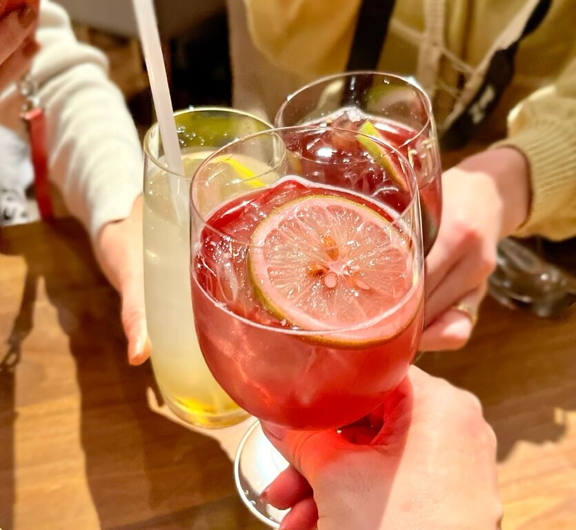 「蜂蜜とフレッシュローズマリーの特製サングリア」と「ビーツで彩る”RED”LEMONADE」、「日替わりカクテル」の3種類。この日の日替わりは「ハニーレモネード」でした。