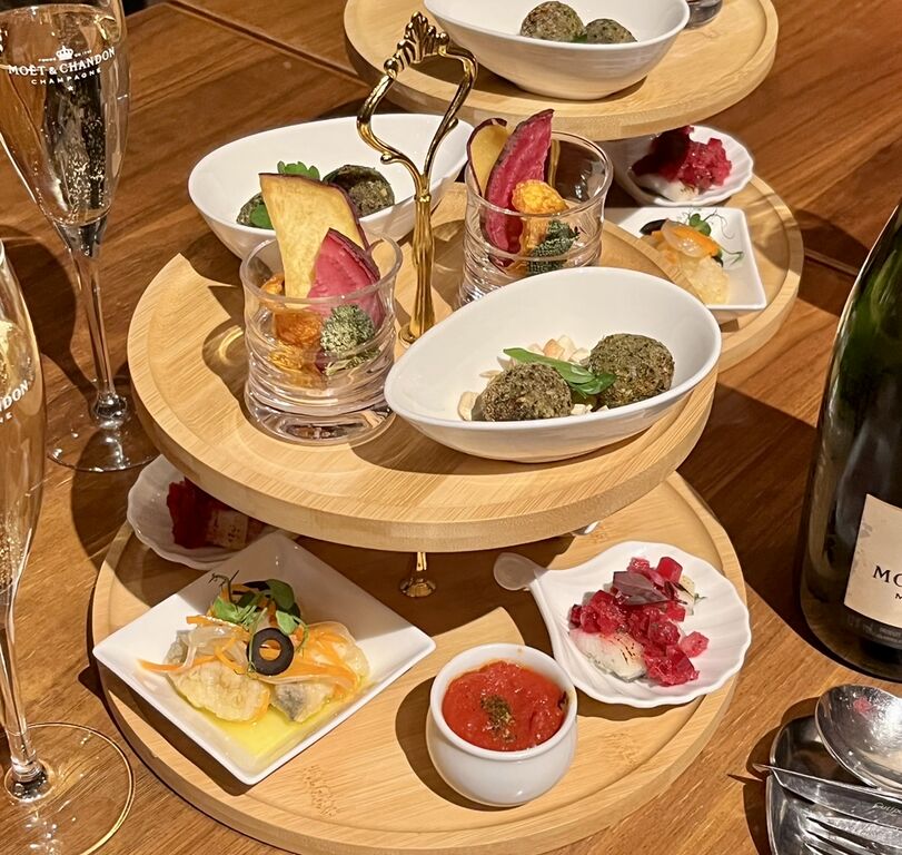 コース料理は、アフタヌーンティースタイルで供される前菜から始まります。