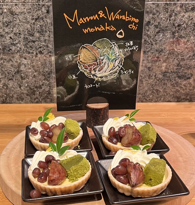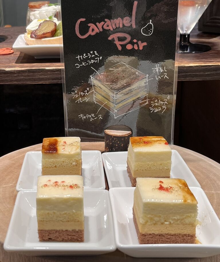タルトモンブラン、マロンブリュレ、さつまいものショートケーキ、かぼちゃのプリン、キャラメルポワール、洋梨のショートケーキ など。