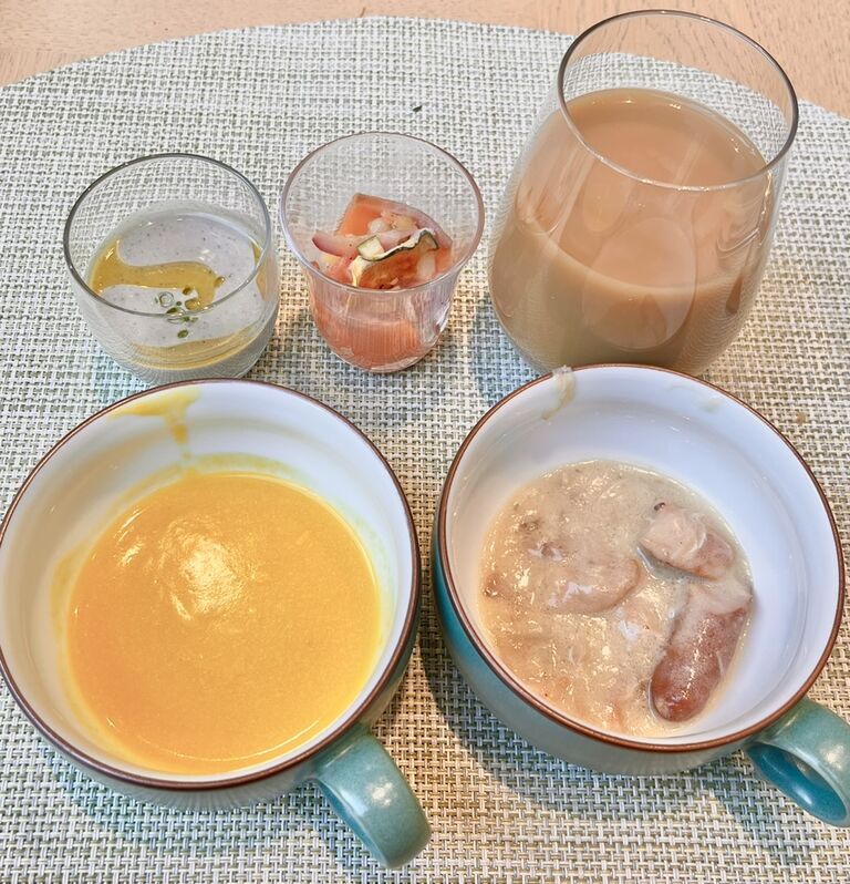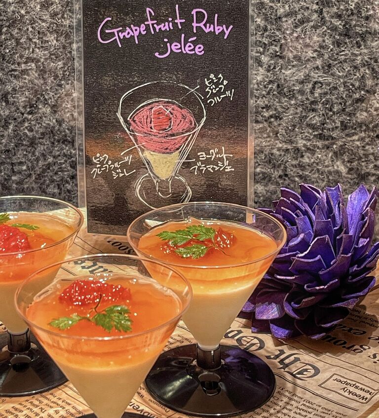 キャラメルと洋梨のグラススイーツや、ピンクグレープフルーツがトッピングされたヨーグルトブラマンジェ、もなかに入った和スイーツも箸休めスイーツにバッチリでした。