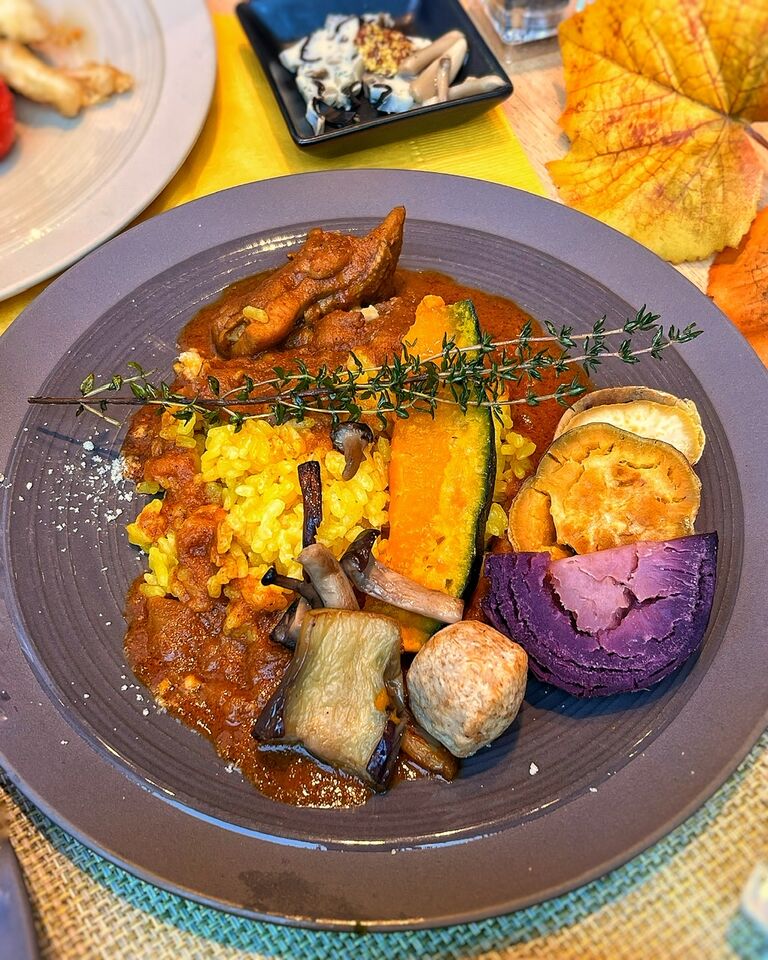 カレーには、サツマイモの食べ比べ3種も載せてみました。