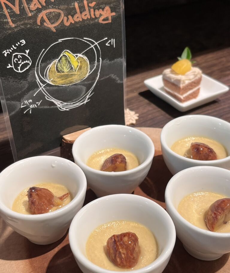 安納芋、紅芋、栗、かぼちゃに洋梨、秋野菜をふんだんに使った、美味しい秋のお料理とスイーツが勢ぞろい。