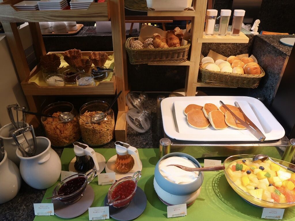 いつも後回しにするとお腹がいっぱいになって手が付けられないパンケーキやアイスクリームのコーナー。