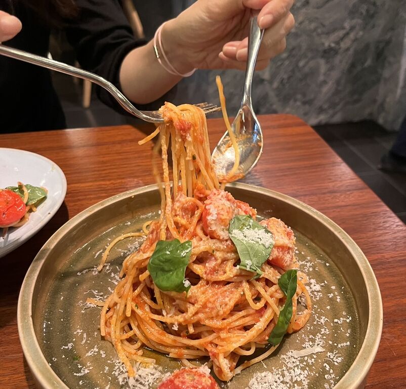 フルーティーなトマトソースに細めのパスタがプリプリで美味しかった💕