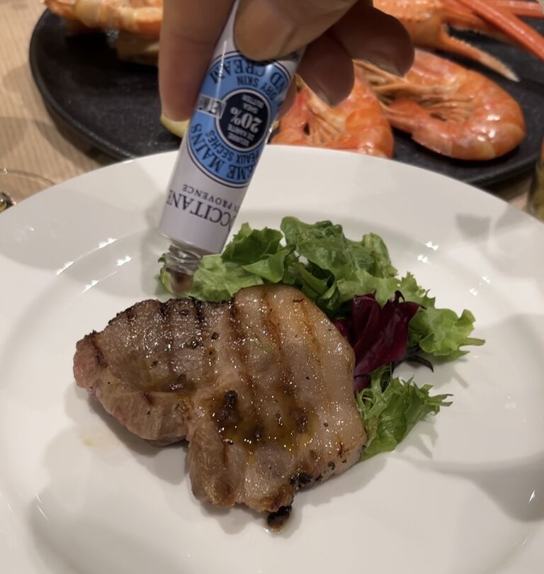 まるでロクシタンのコスメのようなチューブに入ったタプナードソースをかけるのがワクワク♡