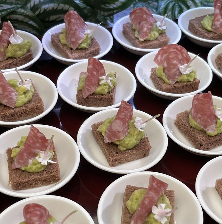 チョコレートブレッドのオープンサンド アボカド サラミ