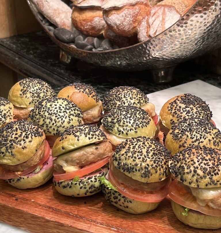 グリーンと赤のクリスマスカラー(イタリアンカラー?)が楽しいチーズバーガー。