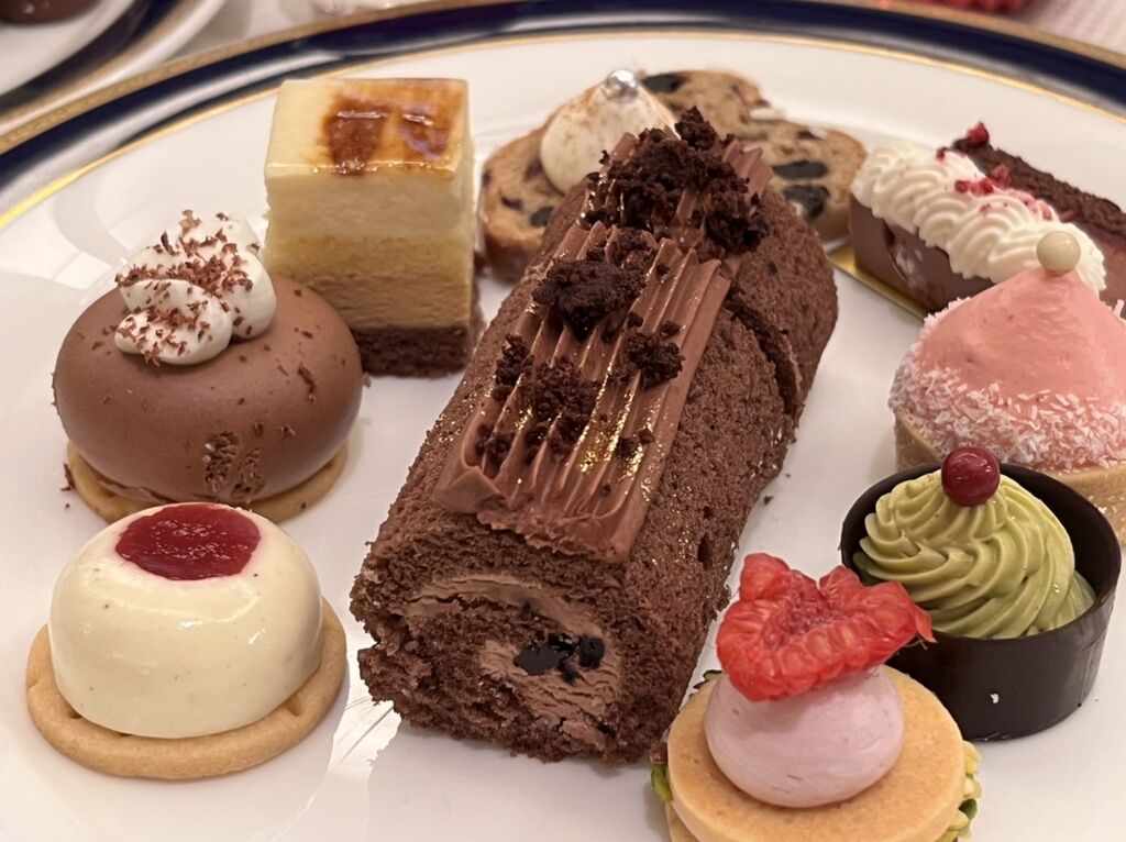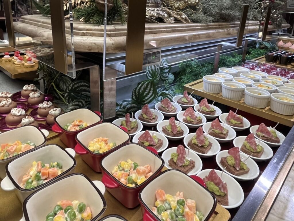 ブッフェコーナーには、20種のスイーツと10種のセイヴォリーのメニューすべてが並んでいます。2年8か月ぶりにブッフェスタイルで楽しめるようになりました♪