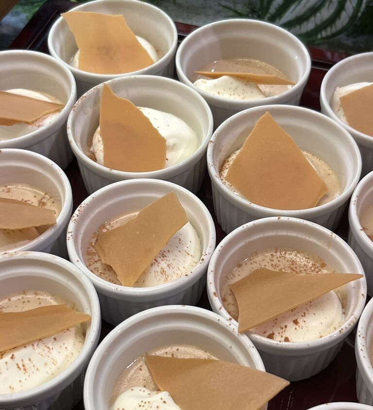 カスタード風のお酒「エッグノック」をスイーツにしたシェフの自信作「エッグノックのクリーム」。