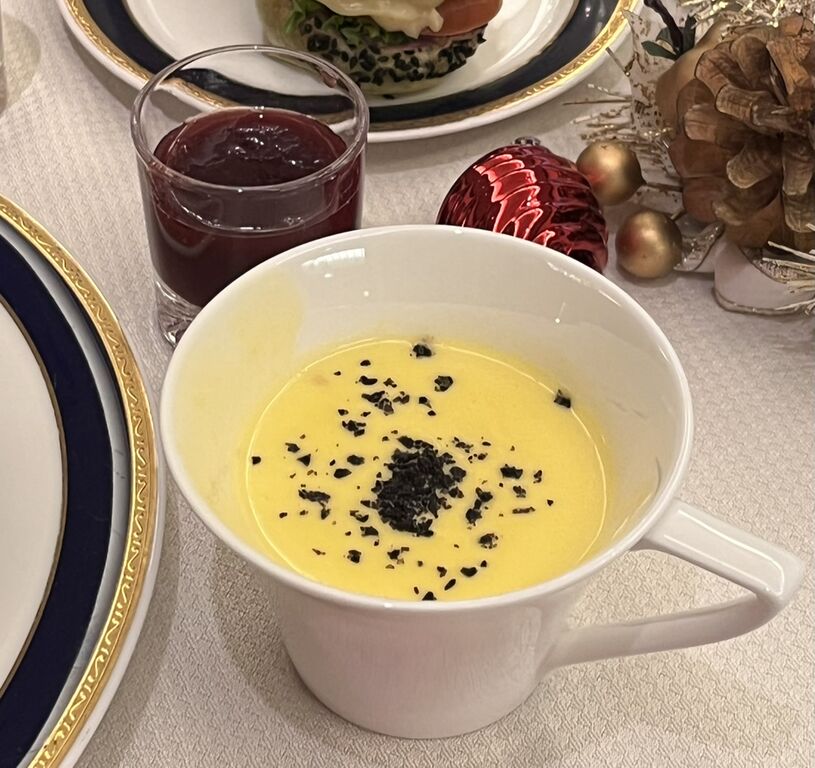 「コーンスープ ブラックオリーブ クルトン」