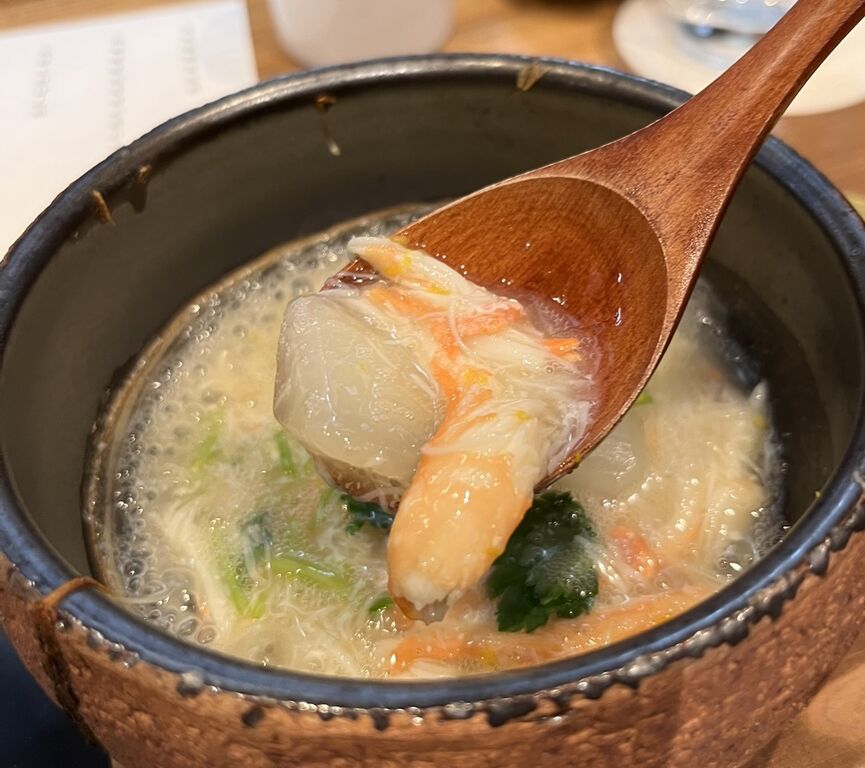 季節の逸品、今なら河豚(フグ)・ズワイ蟹・久絵(クエ)など、そして塩水雲丹・キャビア・トリュフなどの高級食材もふんだんに使い、ジャンルにとらわれない自由な発想で作られた、ぜいたくな味わいを存分に楽しませていただきました💜
