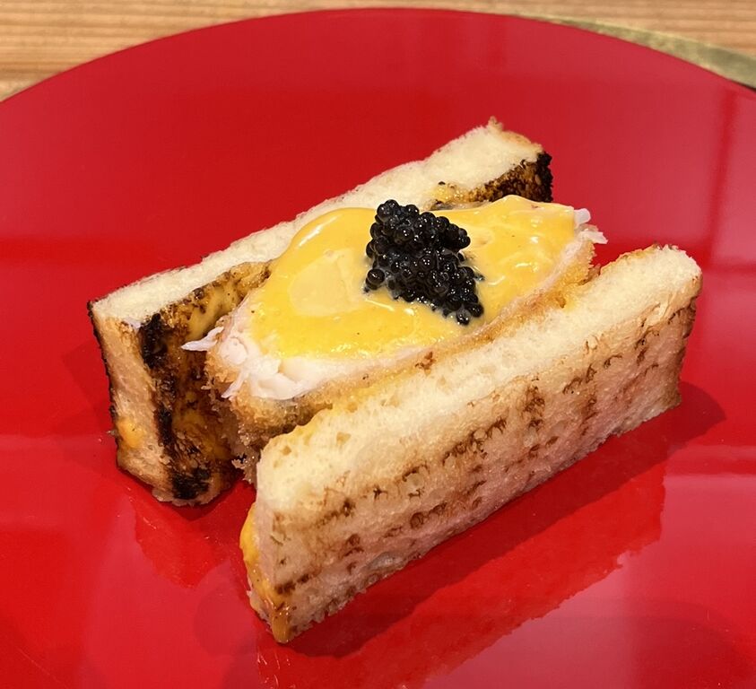 ぜいたくにも、あの甘鯛をフライにして、トーストにサンドして(甘くてやわらかくてサクッと焼きあがった)、レモン香るソース(ザバイヨーネソースのような)とキャビアをたっぷりのせて出来上がり。