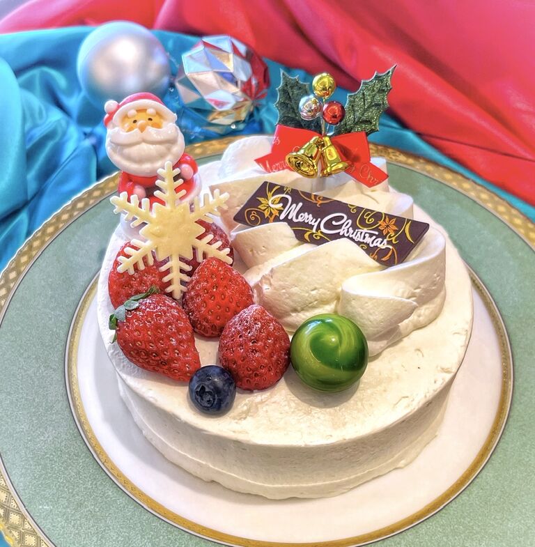 毎年大好評のクリスマスショートケーキ。いちごやブルーベリー、サンタさんもいてかわいいですね。