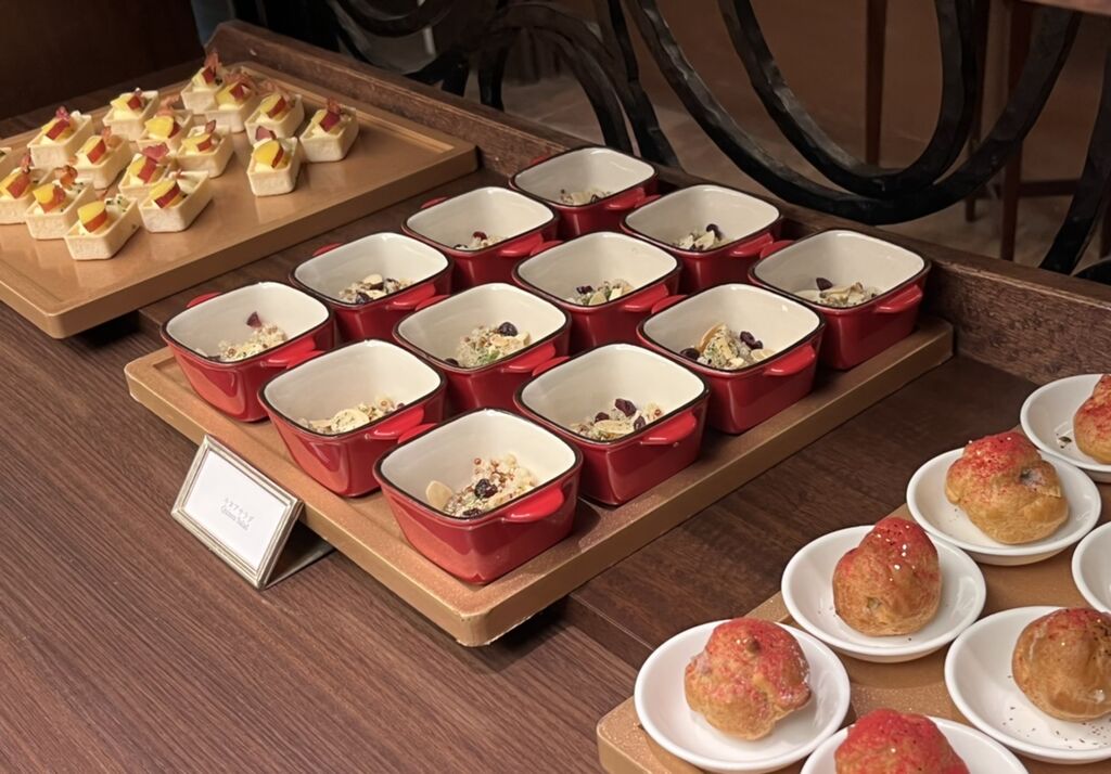 ブッフェコーナーにアイテムがずらりと並ぶフルブッフェ形式です。華やか~♡