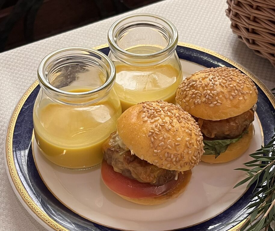 ミニチーズバーガー ストロベリーモスタルダ レタス/ストロベリーリゾット スペックハム グラナパダーノ/ストロベリーカプレーゼ/パンプキンスープ/ミートテリーヌ バルサミコクリーム/タルトレット さつまいも/シュークリーム ポルチーニクリーム/キヌアサラダ