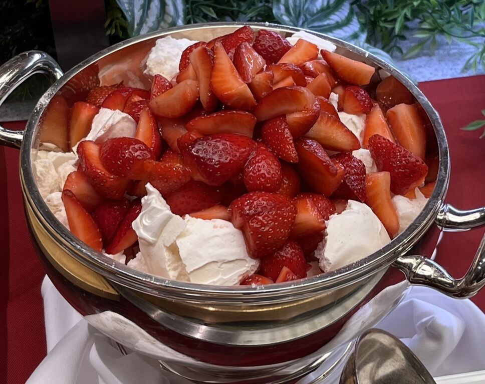 フレッシュないちごに、サクサクのメレンゲと生クリームをたっぷり合わせたもので、イギリスの家庭的なスイーツだそうです。「パブロヴァ」みたいで大ファンになりました♪