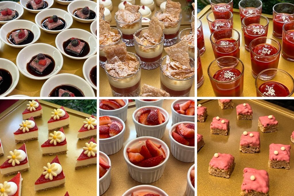 ストロベリーライムタルト/ストロベリーカモミールゼリー/レモンポセット マセレートストロベリー/ストロベリーミルフィーユグラス/デヴォンシャークリームティー/チョコレートバー ヴァローナホワイトチョコレート クリスピー/パレットフレイズ/チーズケーキマカロン/アールグレイとストロベリーのフィナンシェ/レモンとストロベリーのドリズルケーキ/ルバーブとストロベリーのムース/ブリティッシュチーズケーキ/ストロベリーゼリー/ストロベリーミルクシェイクムース チョコレートストロー/ティークッキー/ヴィクトリアスポンジ/ストロベリーロールケーキ/ティー&ビスケット/ストロベリーフラップジャック。