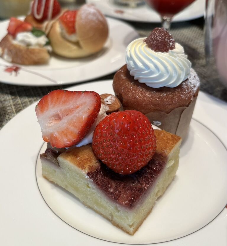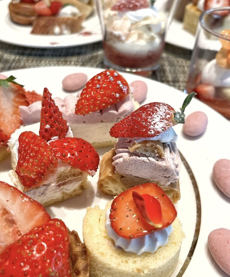 フレッシュなイチゴ、イチゴのソース、ドライイチゴなど、イチゴのバリエーションが豊富でたくさん楽しめました。