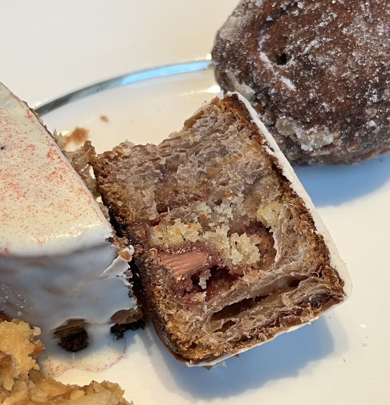 中にイチゴジャムが忍ばせてあり、ホワイトチョコのコーティングとパウダーストロベリーの甘酸っぱさがツボ。おかわりしました。