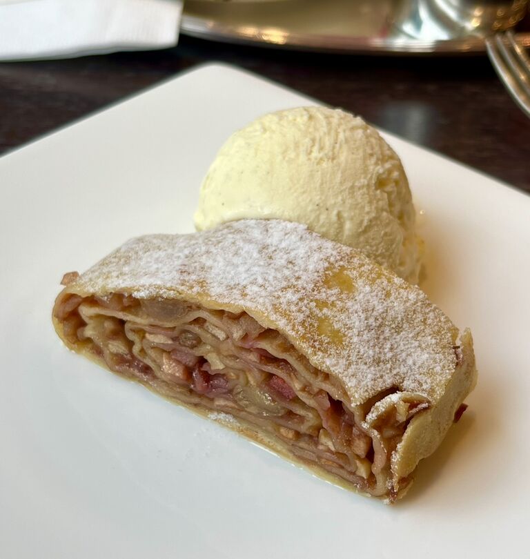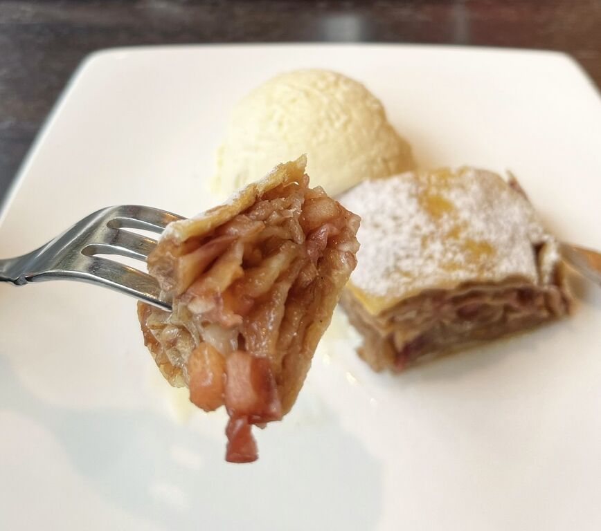 付け合わせのアイスがふんわりとバニラ風味で美味しかった🍨もちろんシュトゥルーデルにもつけて楽しみました。