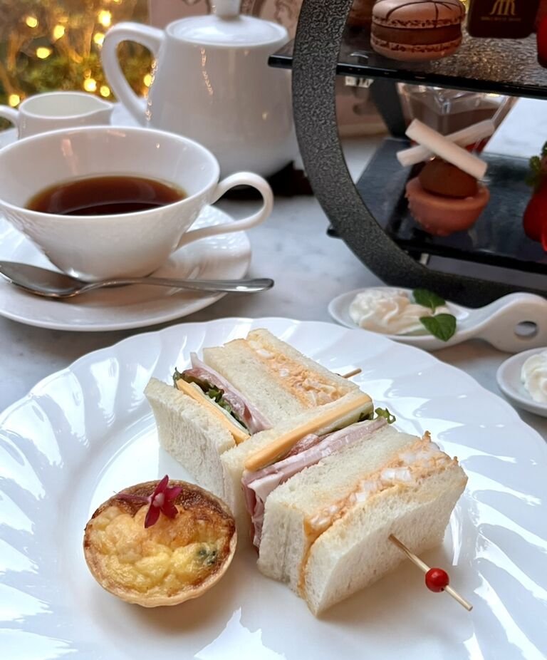 スタンドにはスイーツがずらり。別皿でセイボリーが供されます。