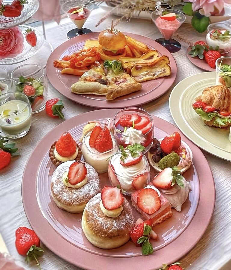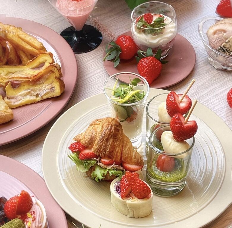 ストロベリーカプレーゼ、苺とアボガドのサラダ、苺と生ハムのクロワッサンサンド、苺と彩り野菜のラップサンドなどなど。