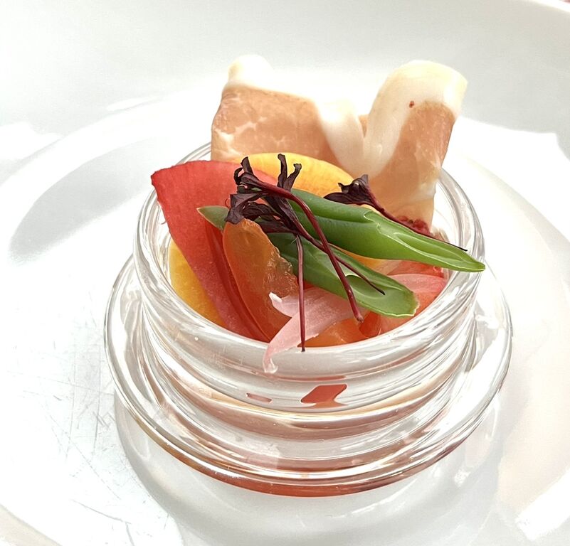 ・エルダーフラワーとクランベリーのジュレ 練乳ソース