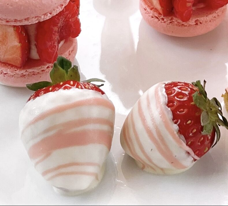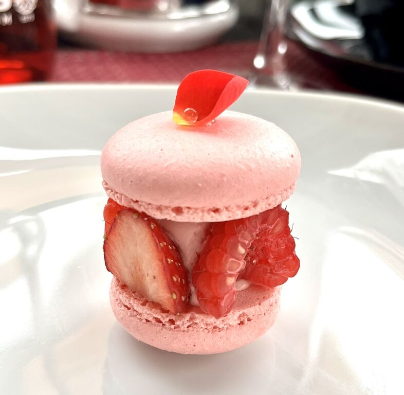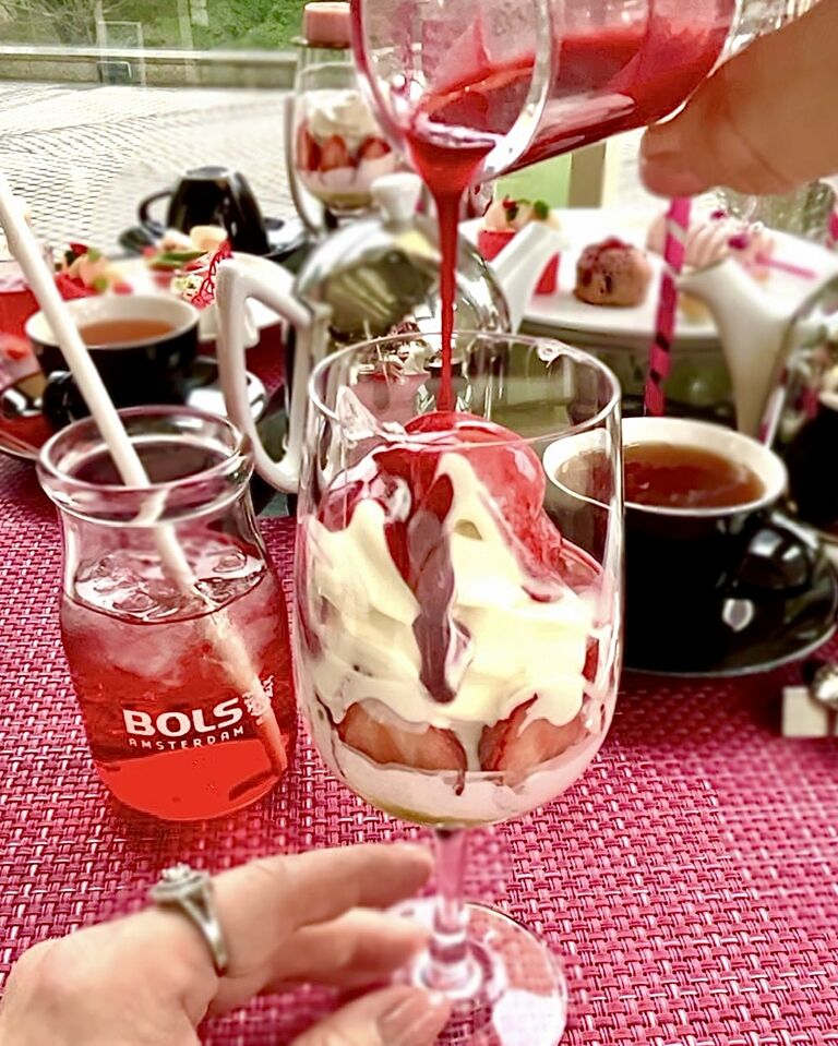 苺とフランボワーズのソースを好みでかけて、アレンジも楽しめました。