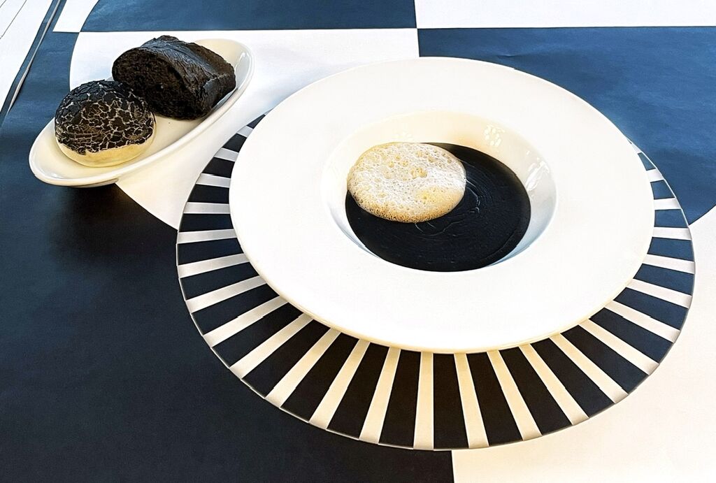 竹炭やイカ墨を使ったり、野菜を焦がしたりして、白と黒のコントラストが見事でアートなメニューの数々は、しばらくじっと眺めておきたくなるビジュアル!