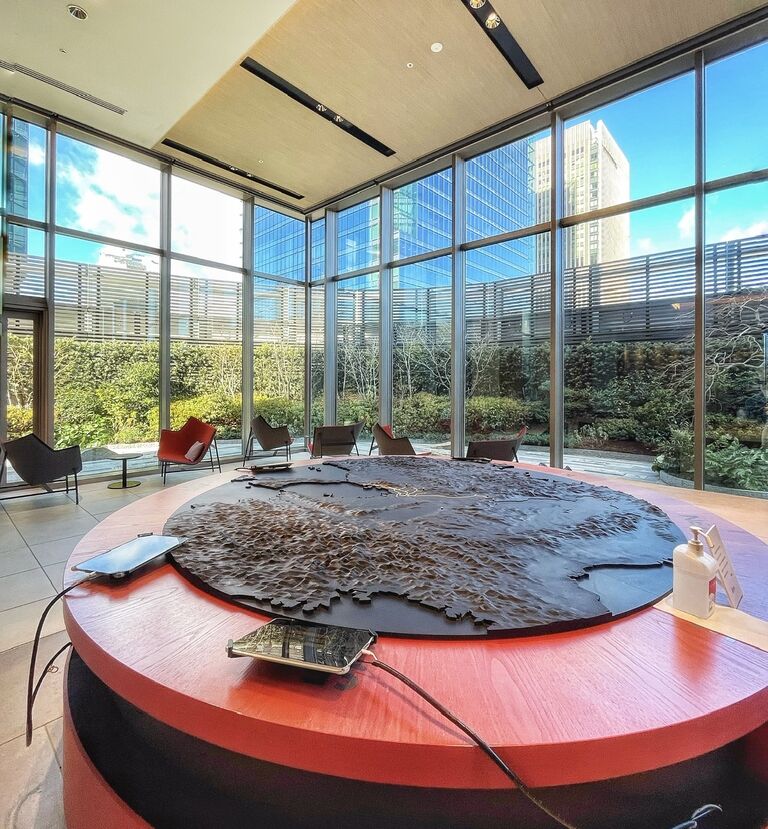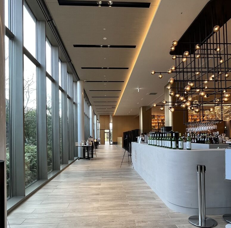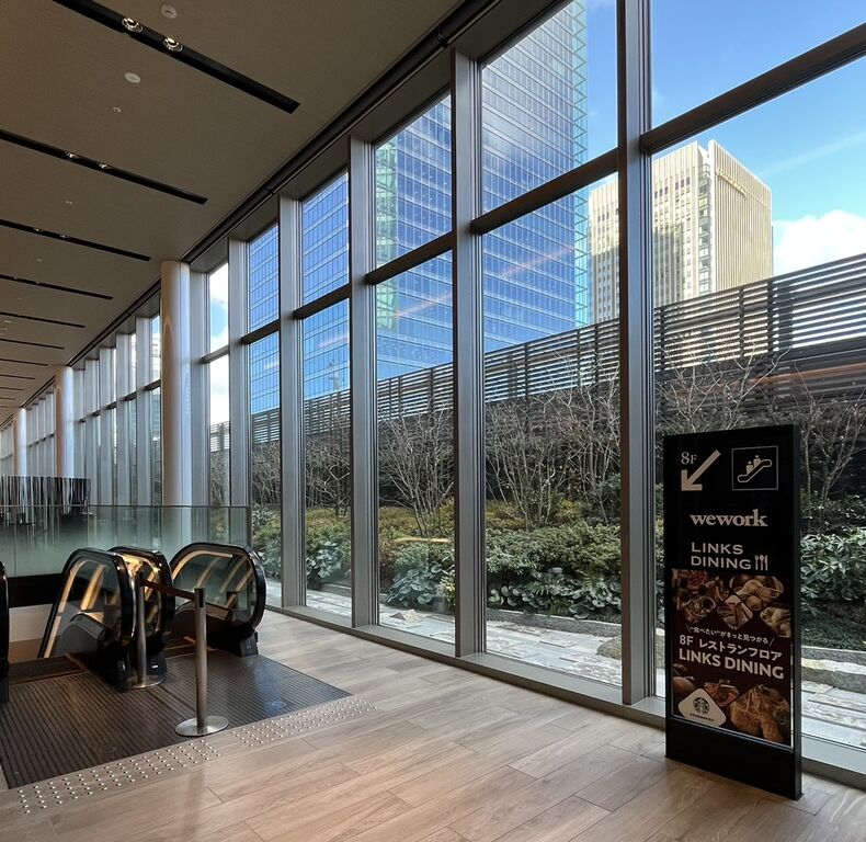 照明が印象的。陽光も差し込み、グリーンが見えます。